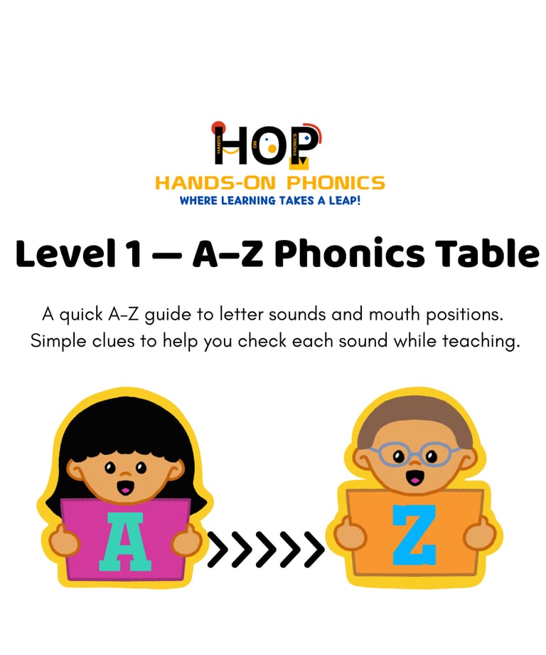 A quick A–Z guide to letter sounds and mouth positions.Simple clues to help you check each sound while teaching.